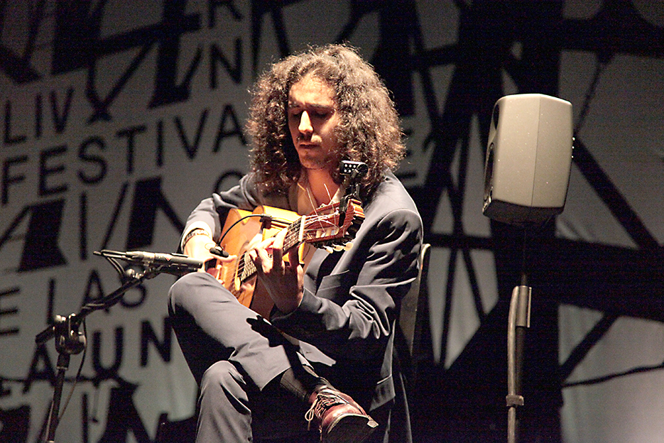 Su pasión y talento para la guitarra le define como solista pero también suele acompañar